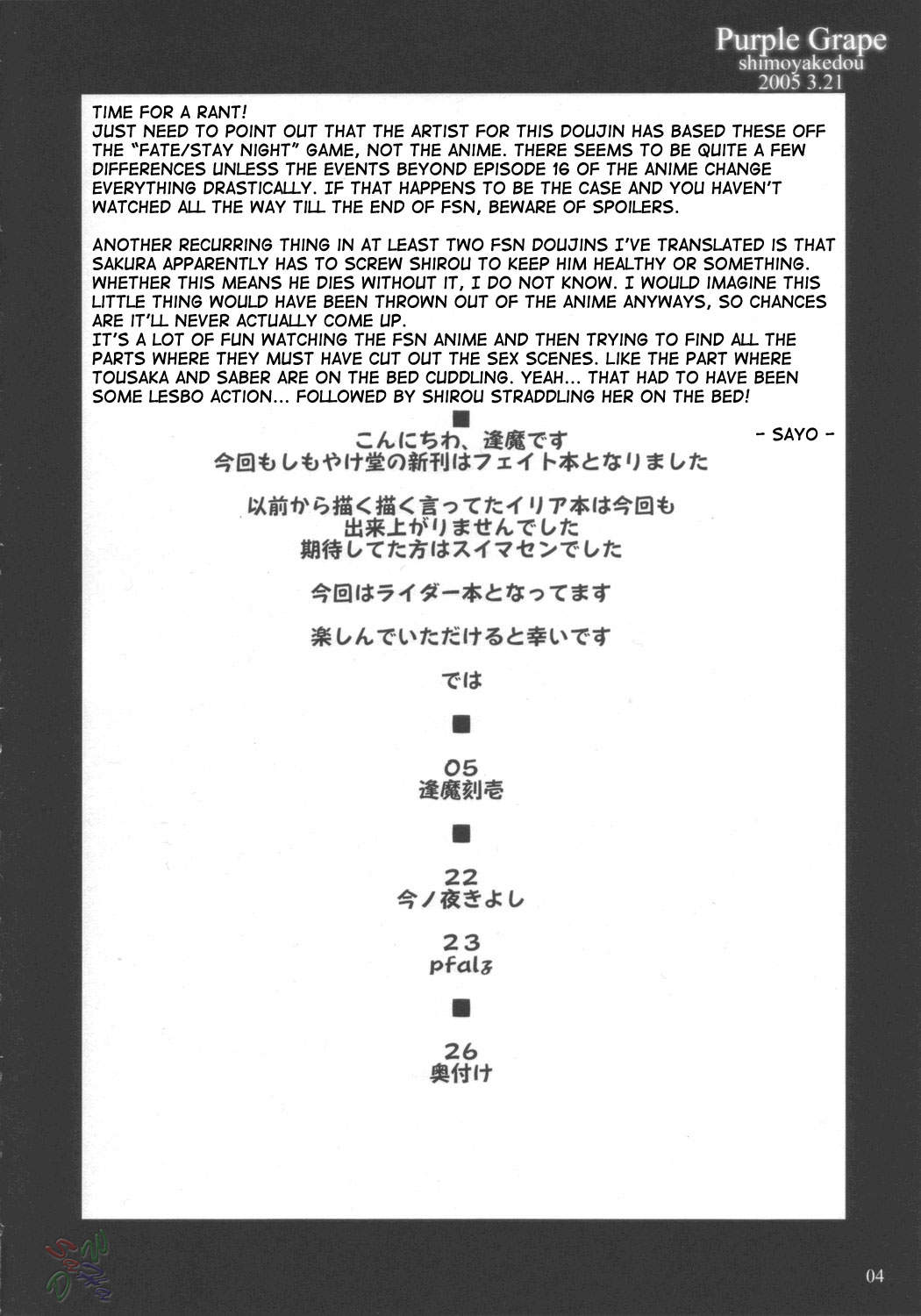 (CSP4) [Shimoyakedou (Ouma Tokiichi)] Purple Grape (Fate/stay night) [English] [SaHa]