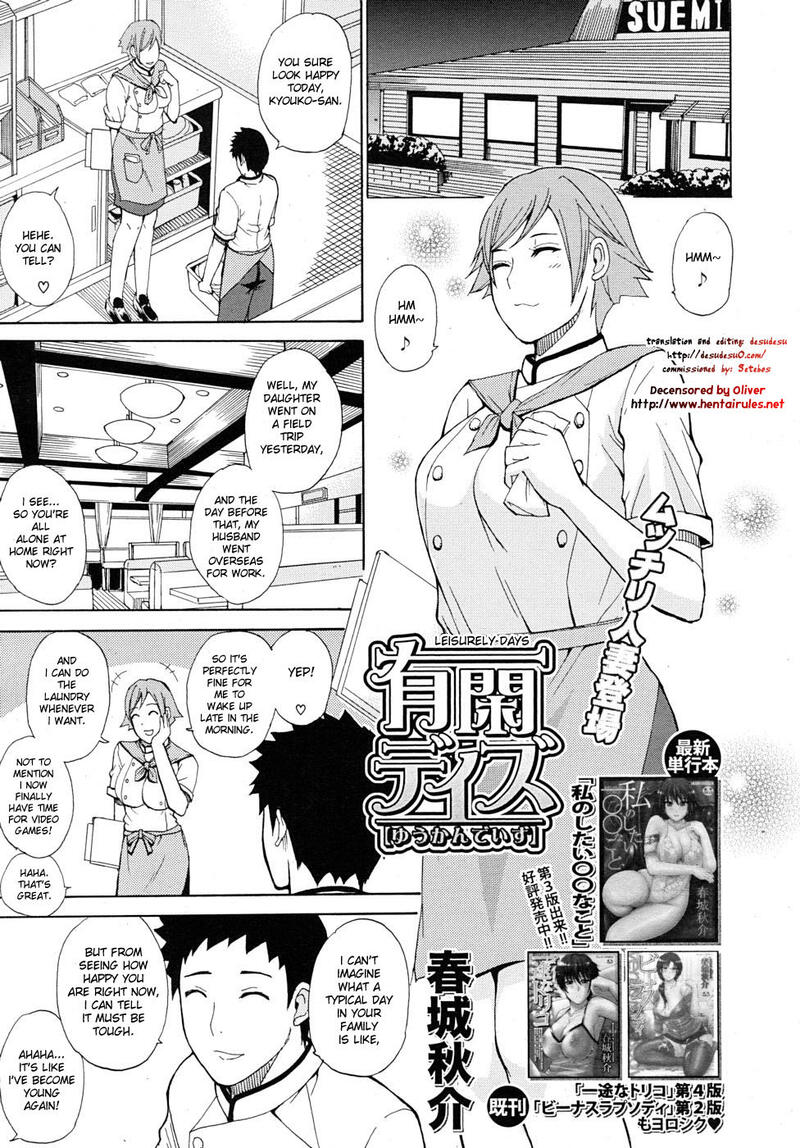 [Shunjou Shuusuke] Yuukan Days | Leisurely Days (COMIC MUJIN 2010-07) [English] [desudesu] [Decensored]